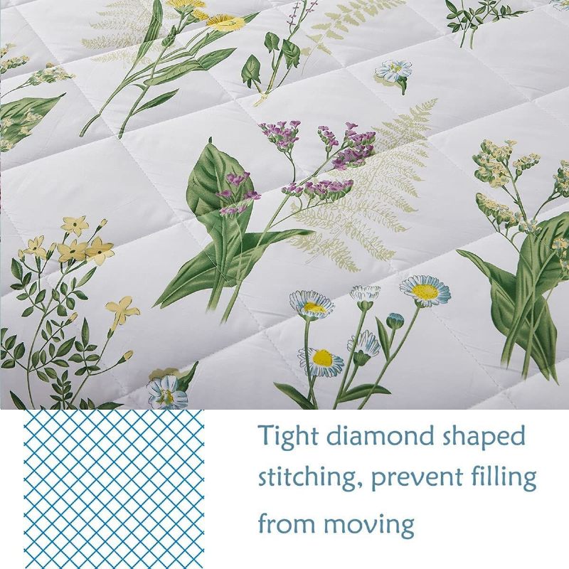 - 【Dizajn】Tiskani Uzorak S Botaničkim Zelenim Lišćem Daisy Također Sa Simpatičnim Kutnim Oznakama Koje Će Dobro Učvrstiti Vašu Navlaku Za Poplun, Klasični I Čvrsti Prošivi U Obliku Dijamanta Čine Jorgan Izdržljivim, Protiv Sljepljivanja I Protiv Pomicanjem, Produžite Vijek Trajanja.