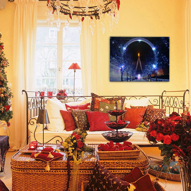 40 X 30 cm Upravljani Led Božićni Snježni Ulični Panoramski Kotač Umjetnička Slika Na Platnu