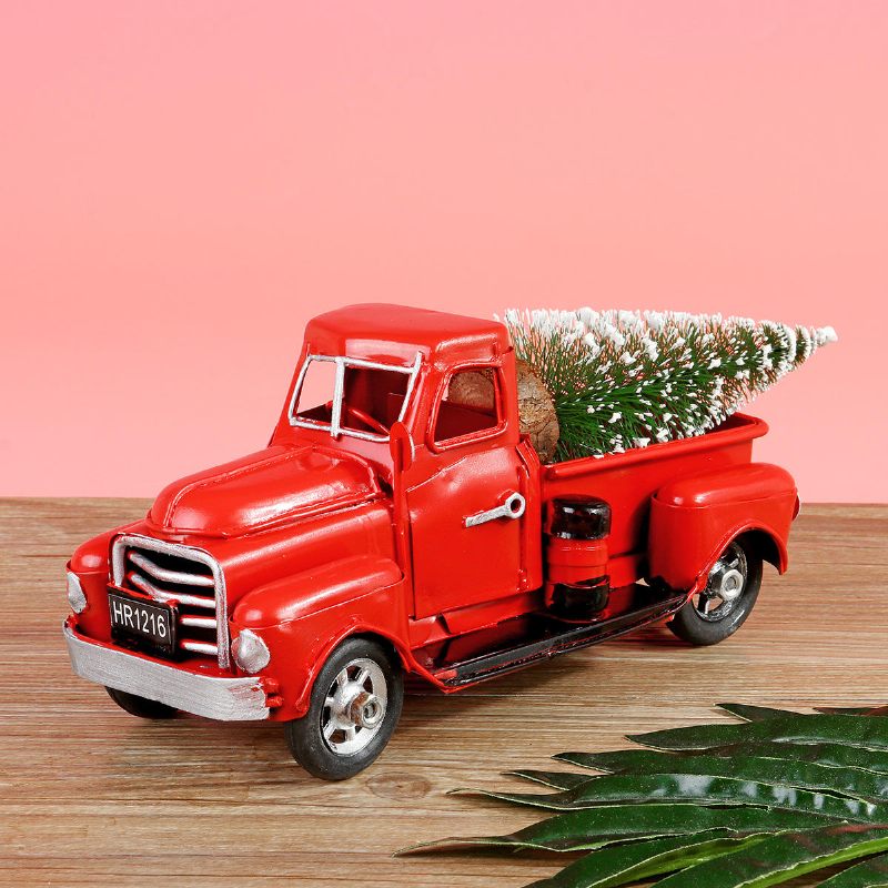 Božićni Metalni Automobil Stari Model Crvenog Kamiona Ukrasi Za Zabave U Starinskom Stilu + Poklon