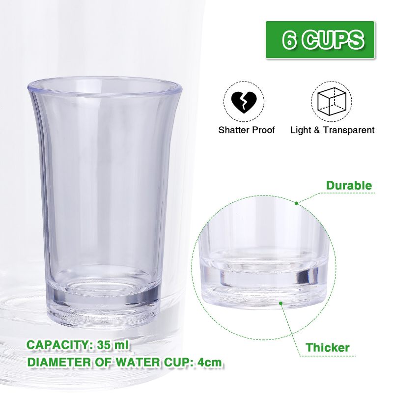 【Visokokvalitetni I Sigurni Materijali】 Ovi Stakleni Dozatori Za Piće Izrađeni Su Od Plastike Pogodne Za Hranu, Koja Je 100% Netoksična . 6 Prozirnih Akrilnih Čaša Su Debele I Izdržljive, Prikladne Za Sva Vina I Pića.