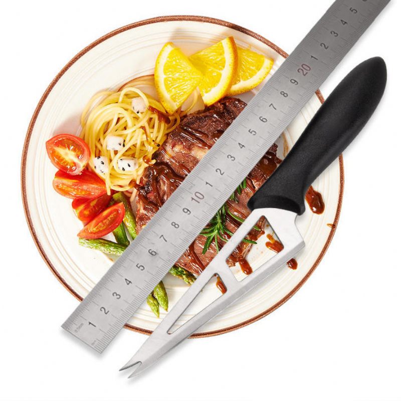 Proizvod Je Kuhinjski Nož Od Nehrđajućeg Čelika S Izdubljenim Trokutom Koji Vam Pomaže Da Lako Narežete Sir Ili Šunku Na Komade.