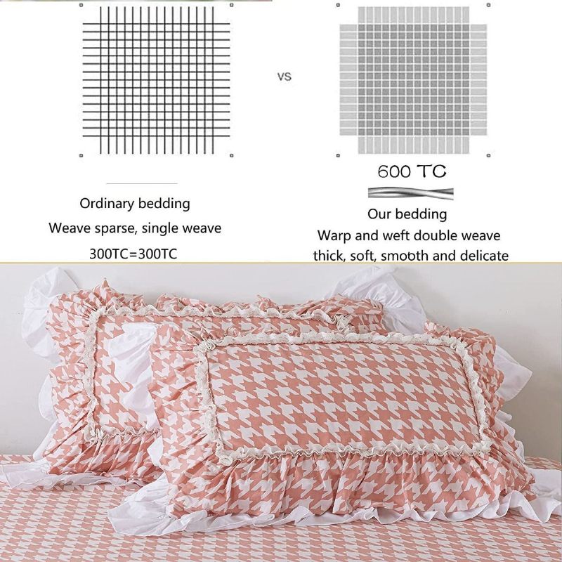 Ružičasta Rešetkasta Posteljina Za Djevojčice Od 4 Komada 100% Pamuk Čipkasti Dizajn S Uzorkom I Volanima Navlaka Za Poplun Visine 18 Inča I 2 Jastučnice