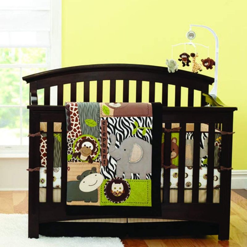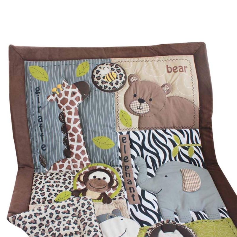 Set Posteljine Za Dječji Krevetić Za Dječake S Odbojnicima Slon Žirafa S Uzorkom Životinja Majmun Nilski Konj Sova I Medvjed Posteljina Za Dječju Sobu 7 Komada 100% Mekani Pamuk
