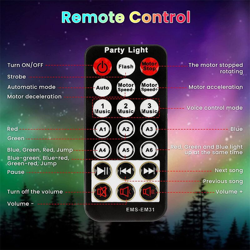 3. Daljinski Upravljač, Uključujući Prekidač/Stroboskop/Automatski Ciklus/Brzinu Motora/3 Načina Upravljanja Zvukom//6 Načina Osvjetljenja.