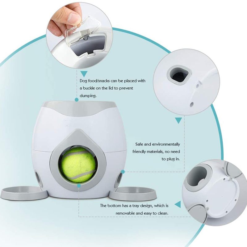 Pas Stavlja Tenisku Lopticu U Dozator Za Dohvat Loptice I Poslastice S Gornjeg Ulaza, Zatim Se Loptica Otkotrlja S Prednje Strane, Dok Se Hrana Oslobađa S Obje Strane I U Tanjure S Hranom. Pas Dobiva Hranu Kao Nagradu, Uživajući U Igri S Interaktivnom Igračkom Čak I Bez Vas.