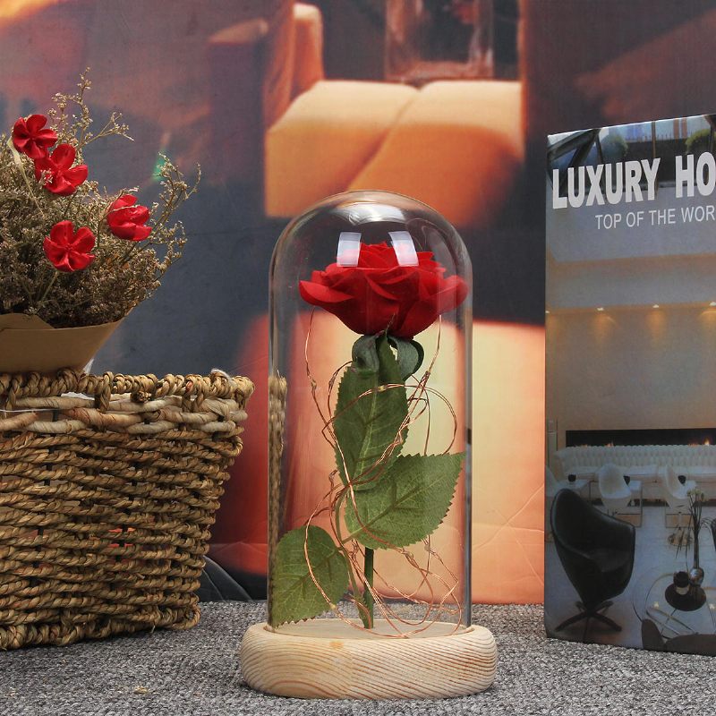 Red Rose Svjetla Dekoracije Ljepota Začarana Očuvana Crvena Svježa Ruža Stakleni Poklopac + Led Svjetlo