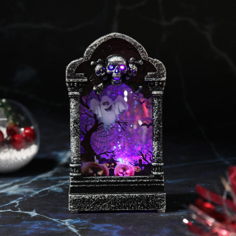 1. Svjetleća Kutija U Obliku Retro Nadgrobnog Spomenika Dizajnirana S Jedinstvenim Uzorkom Za Noć Vještica.