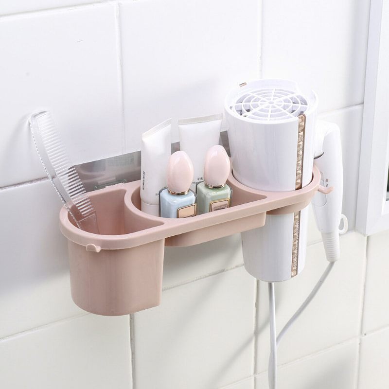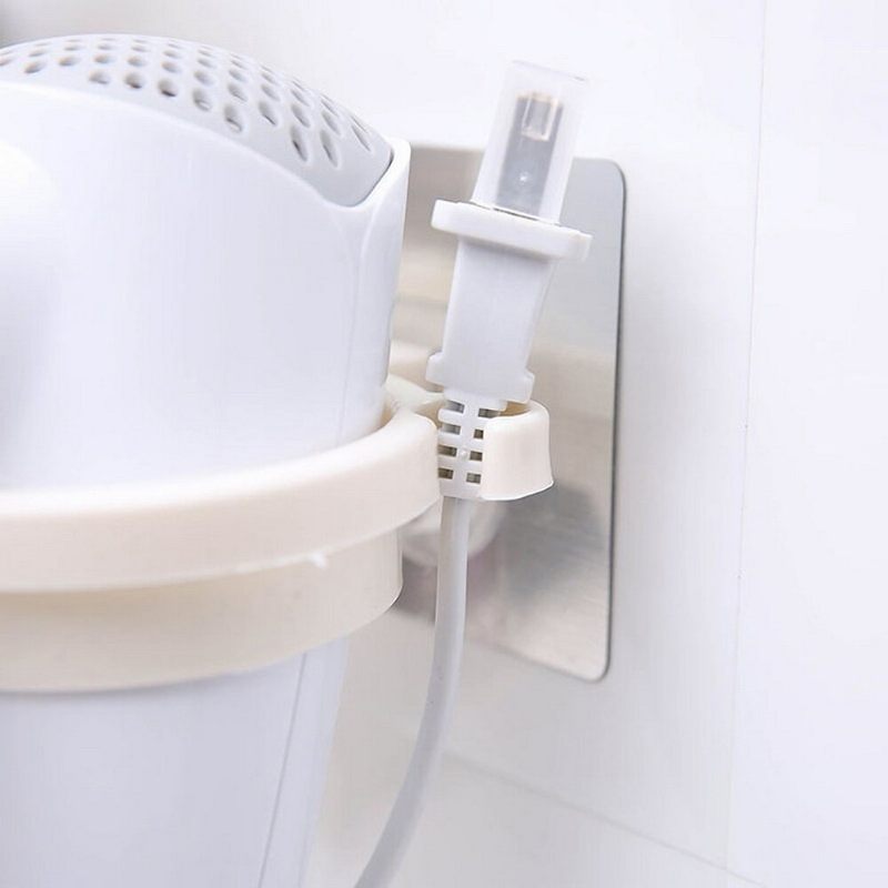 Zidni Držač Za Stalak Za Sušilo Za Kosu Višenamjenski Za Pohranu U Kupaonici Plastični Nosač Bez Bušenja S Dvije Kuke